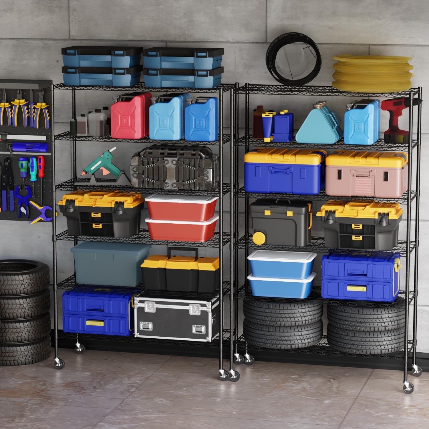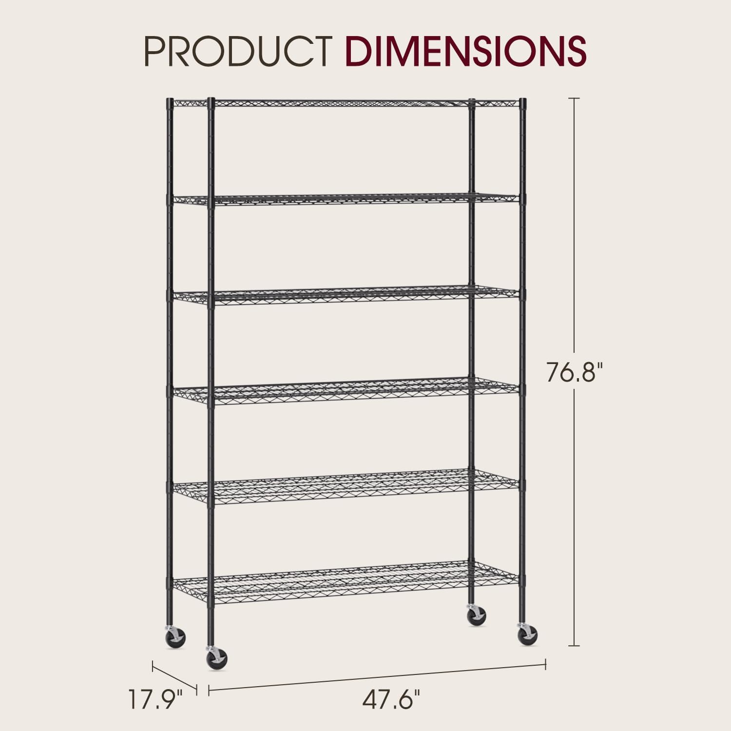 BestOffice 18x48x77 Storage Shelves Commercial Heavy Duty Metal Shelves Garage Organizer Wire Rack Shelving Storage Unit Shelf Adjustable Utility 6000 LBS Capacity,Black