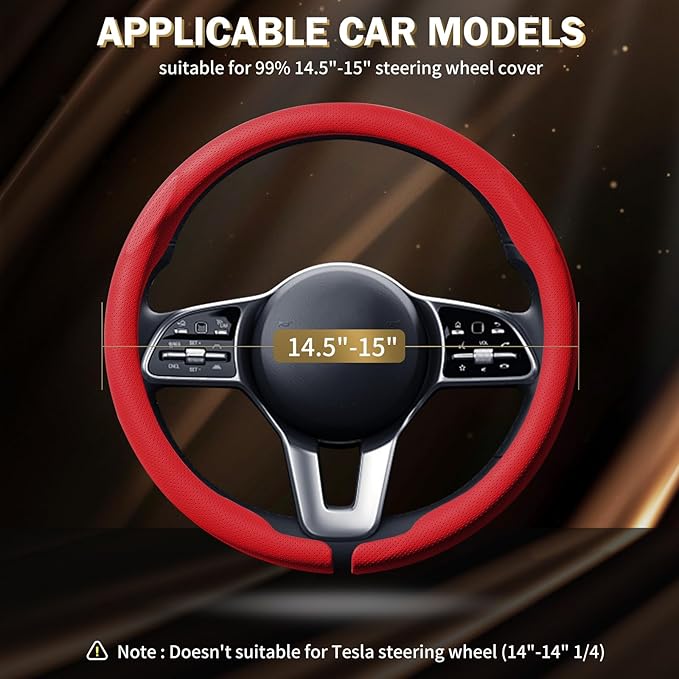 - Compatibility: The open design in bottom makes installation a breeze, typically completed in just 15s. The bottom-open design also greatly enhances the leather steering wheel cover's compatibility and better fit most 14.5" to 15" standard-size steering wheels. It's heat-resistant and cold-resistant, universal for all seasons.