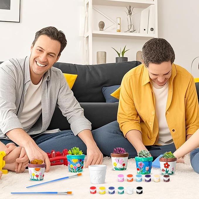 - Sufficient Quantity: you will receive 6 sets of DIY paint ceramic kit, includes 6 pieces of unpainted flowerpots, 12 colors of mini acrylic paints, 2 pieces of paint brushes and 1 piece of palette, enough in quantity everything you need to unleash your inner artist