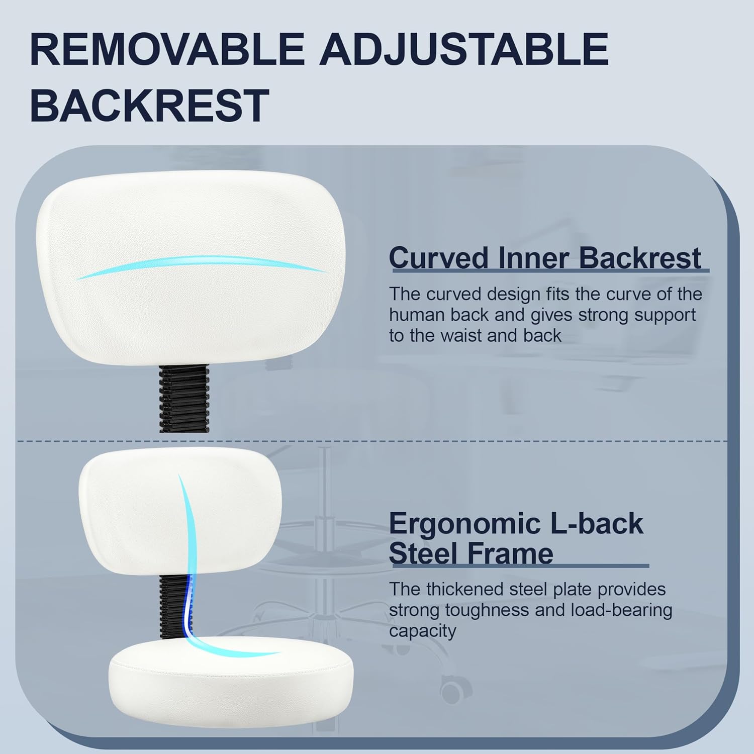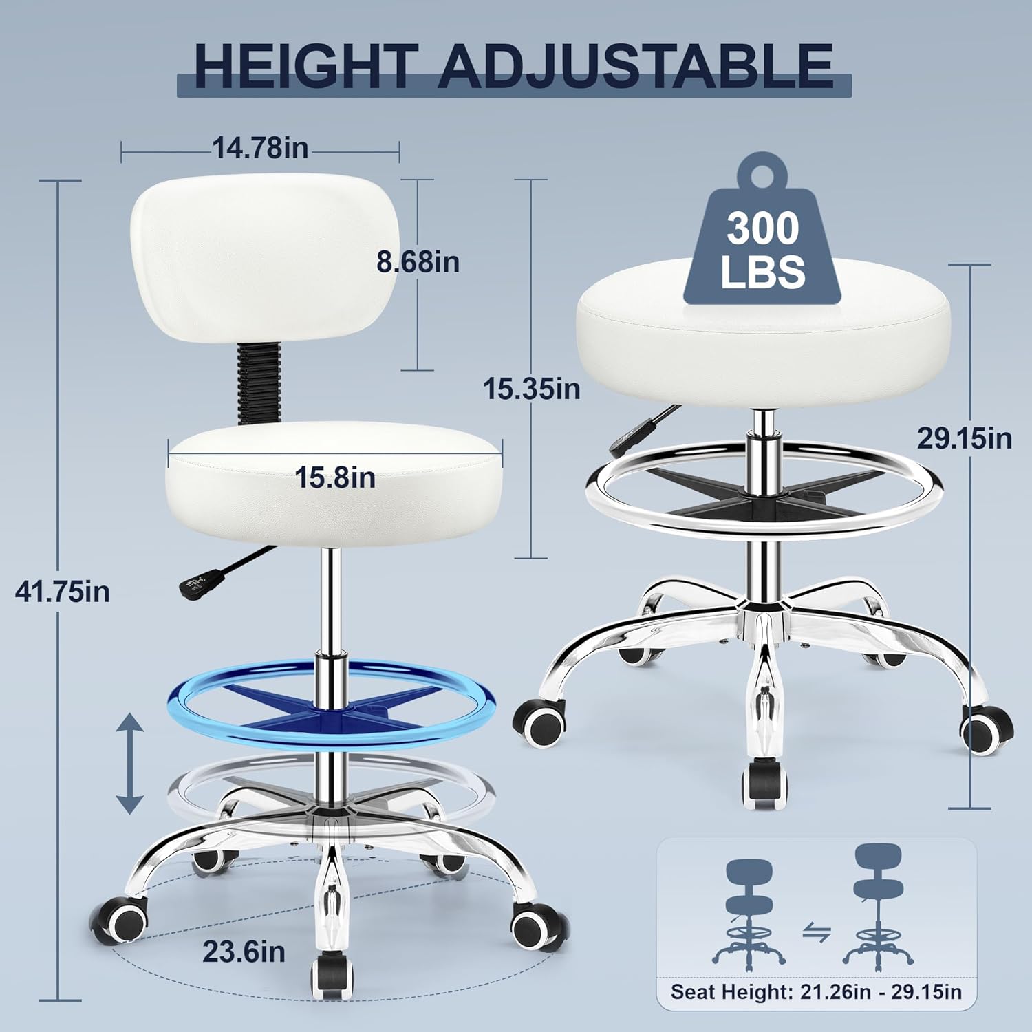 Drafting Chair with Backrest – Adjustable Foot Rest Rolling Stool with Wheels, PU Leather Swivel Stool for Office Spa Studio Lab Counter Salon Home Work Bar Kitchen Shop(White)