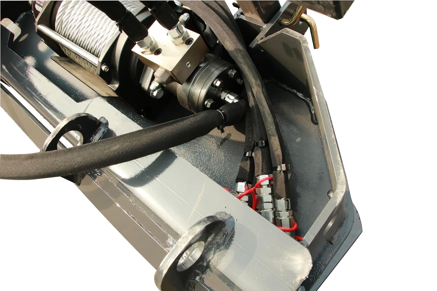 7.5T Skid Steer Winch, 93 FT Steel Cable Forestry Logging Winch, 15000 LB Pulling Capacity, Manual Clutch, Ground Stabilizer Jaw, Safety Screen