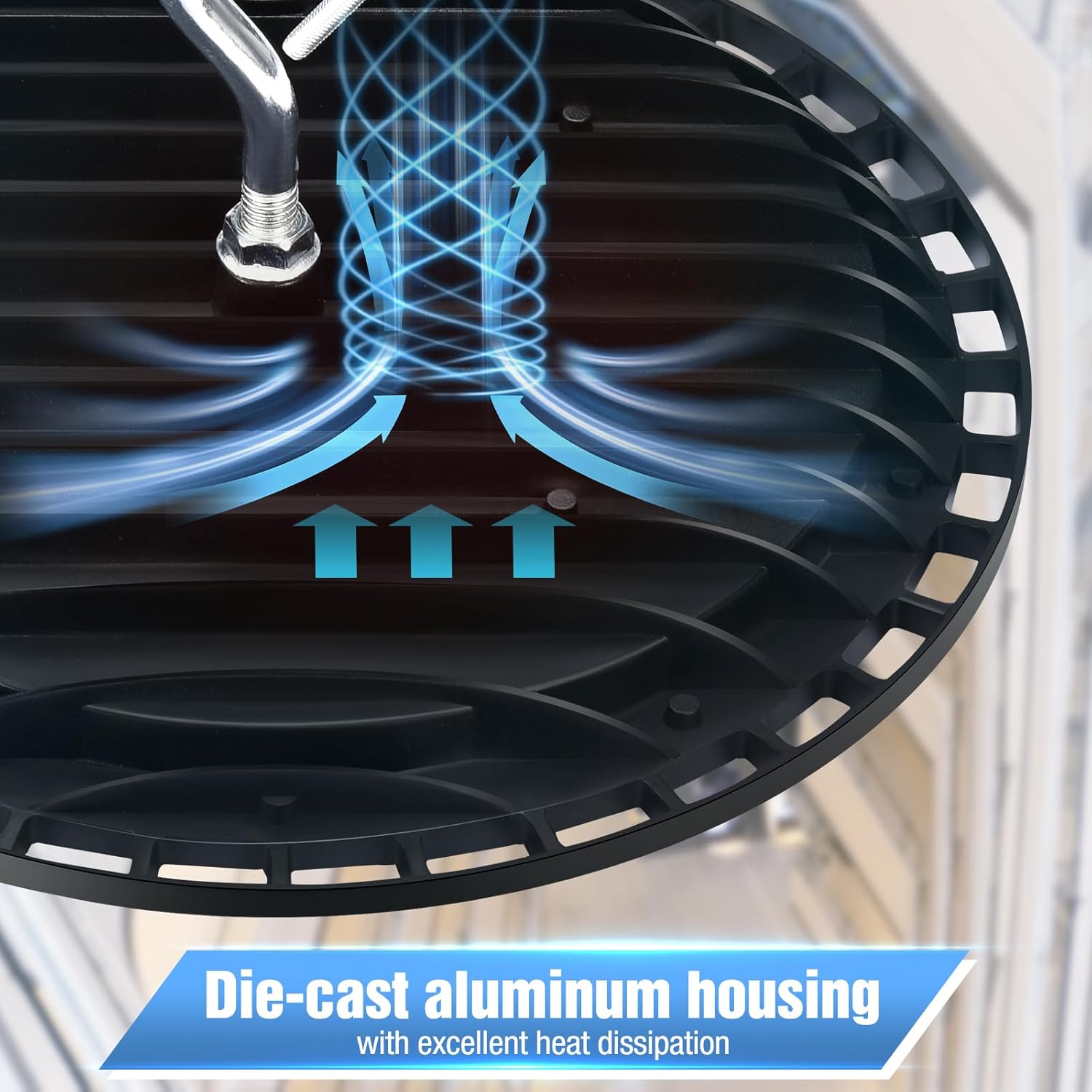 - Super Brightness & Electricity Bill Saving:The 150 watt UFO high bay led lights come with super bright SMD3030 LED chips, up to 21,000 lumens flux out, light efficiency up to 150 lm/w, equivalent to 650W HID/HPS, and instantly saving your power bill up to 83%