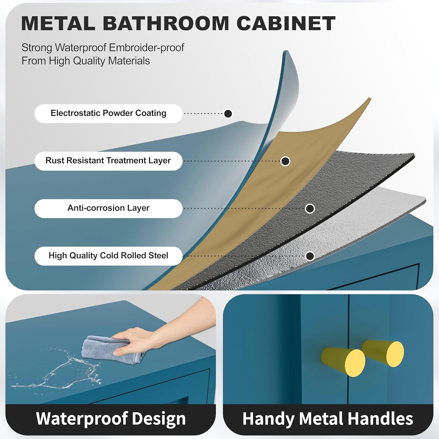 Metal Bathroom Storage Cabinet,Bathroom Floor Storage Cabinet with 2 Adjustable Shelves and 2 Doors,Freestanding Sideboard for Small Spaces, Living Room, Home Office, Dining Room