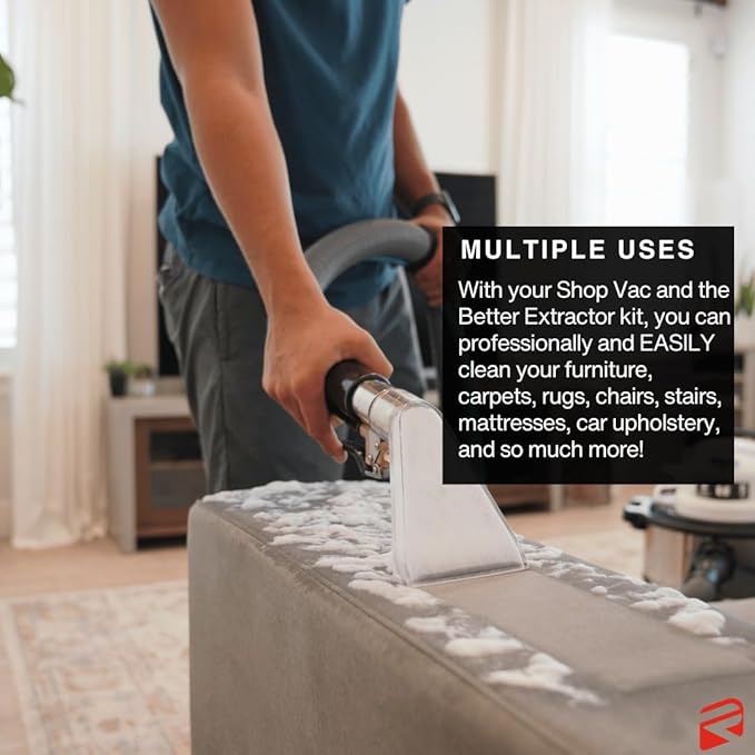 - Versatile Deep Cleaning: Easily attaches to any standard shop vacuum with a 2” inlet, allowing you to clean car seats, rugs, stairs, upholstery, mattresses, carpets, and more.