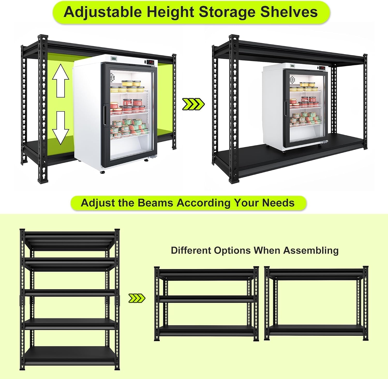 - ăAdjustable Storage SpacingăWe offer you different options when assembling. This worked amazing for what i needed to use it for. It can be assembled as one tall shelving unit or two separate shorter units. The height between each layer can be adjusted as your needs.