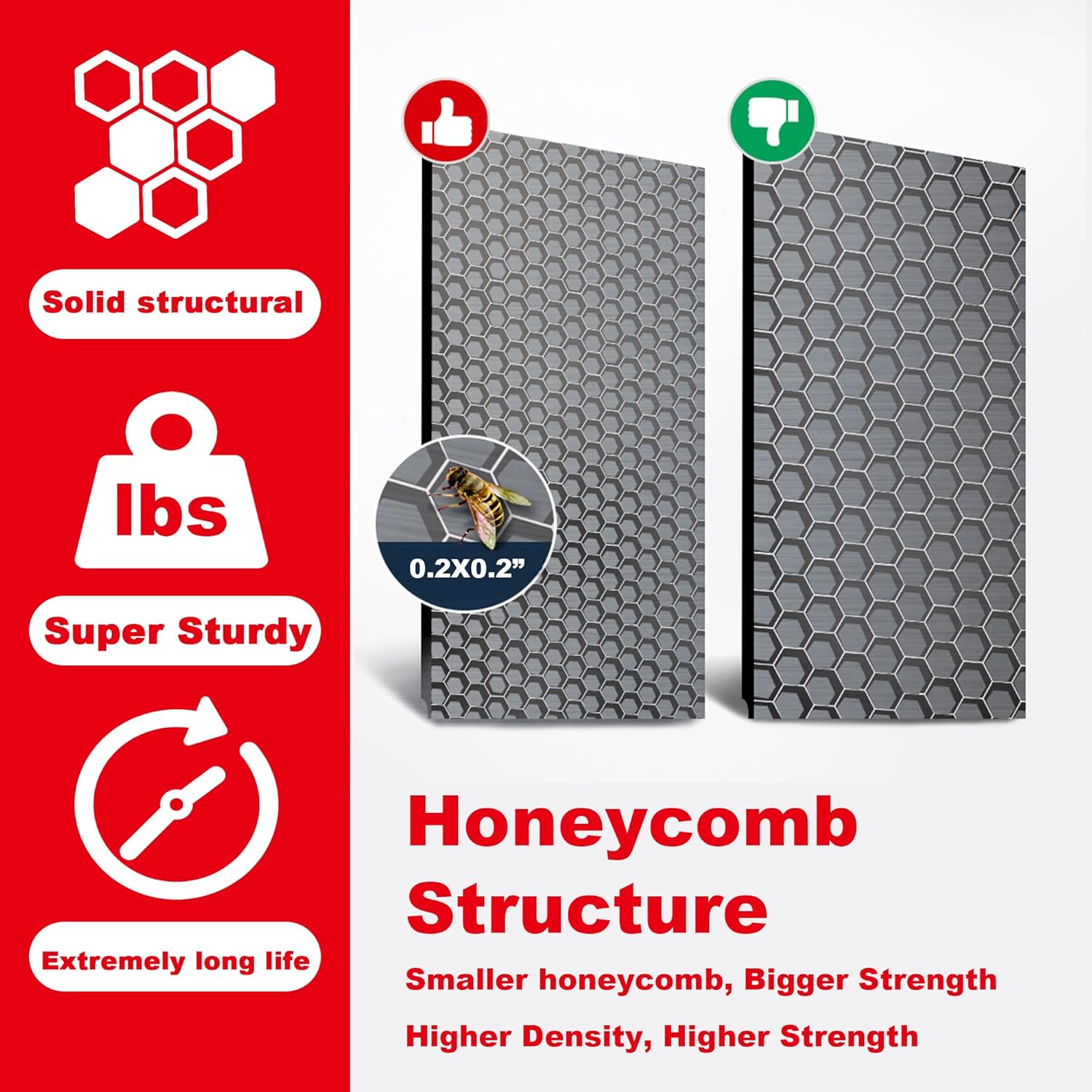 - Groundbreaking Design: Our garage shelves boast exclusive aluminum honeycomb panels. Different from traditional shelves that are easy to bending or deformation, the honeycomb pattern evenly distributes weight, enabling it to hold heavy items without sagging or bending. With their unique construction and high load-bearing capacity, these shelves are set to transform your garage organization.