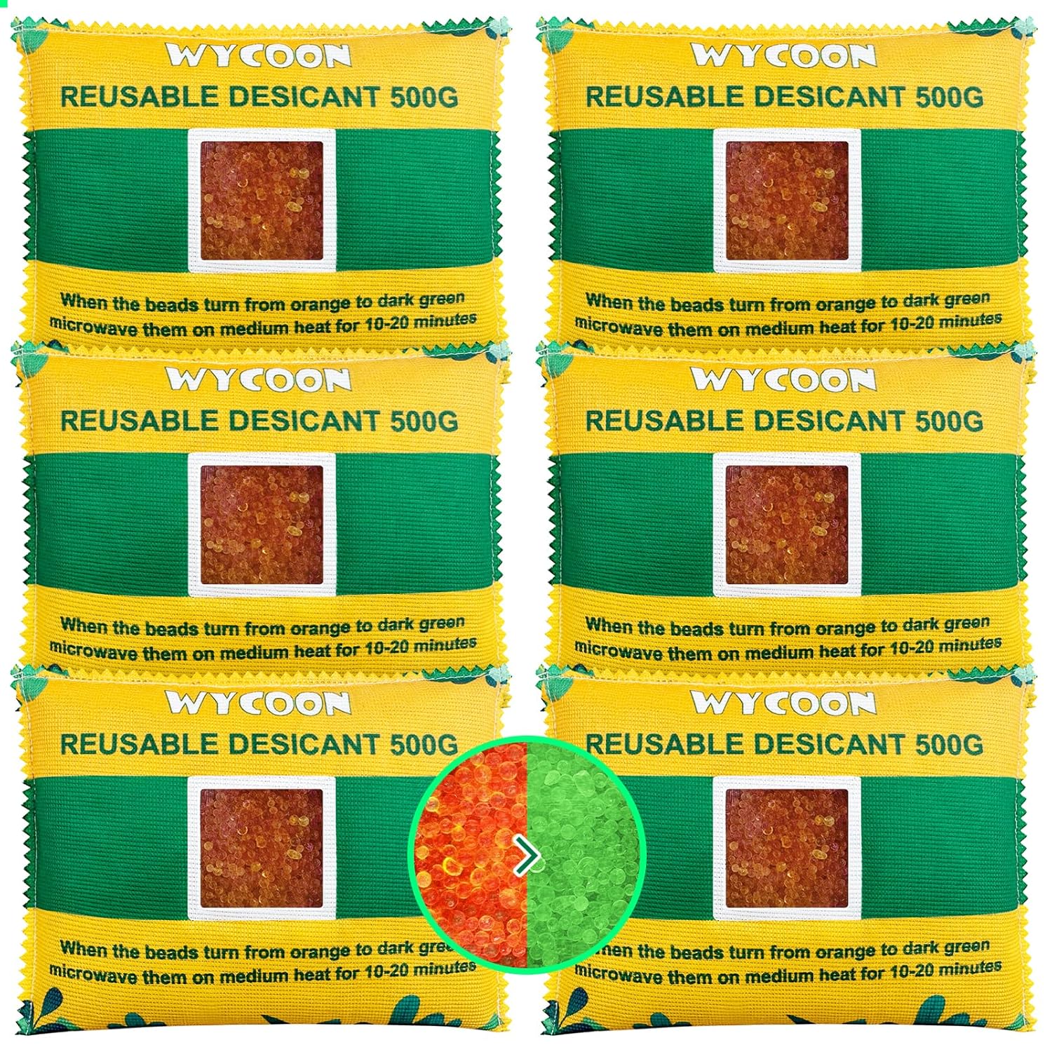 Rechargeable Desiccant Pack 6 x 500g, Moisture Absorber with Transparent Indicator Window, Desiccant Dehumidifier for Closet, Basement, Gun Safe, RV,Garage & Storage