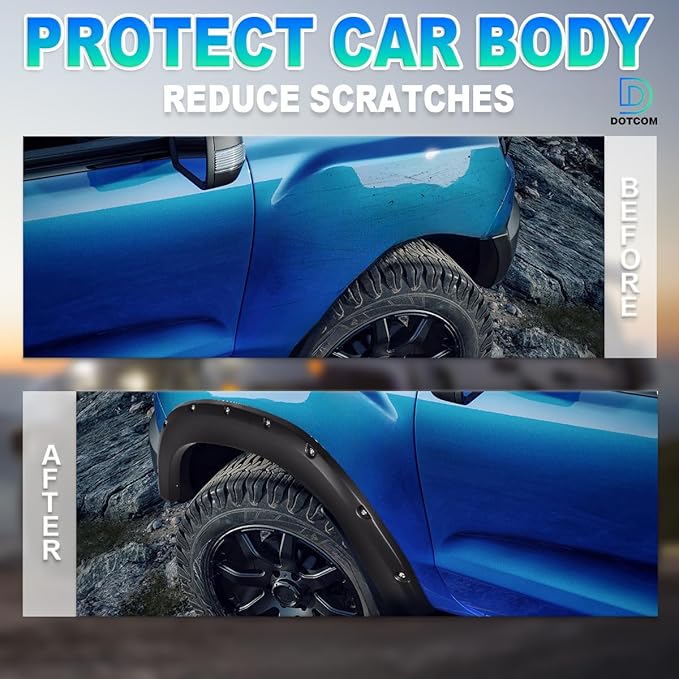 DOTCOM Fender Flares,Compatible with Toyota Tundra 2007-2013,Wheel Arch Cover Trim,Paintable Matte Pocket Smooth Riveted Style 4PCS