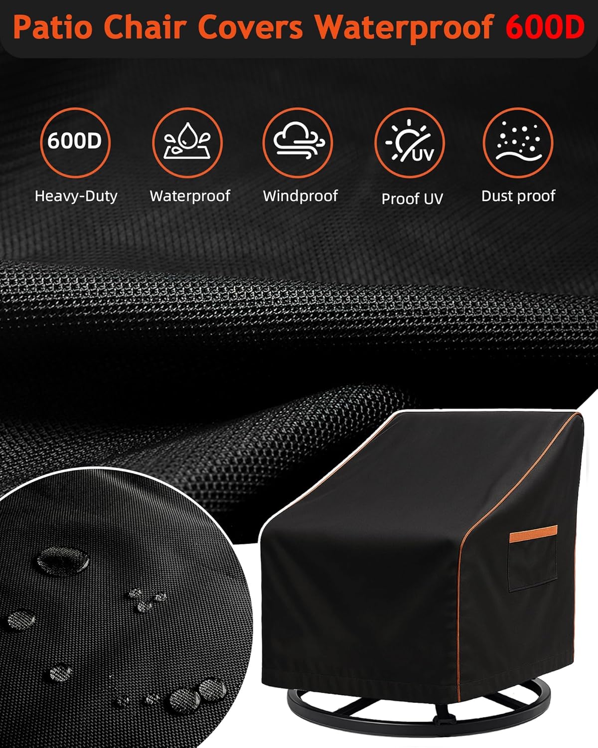 Outdoor Waterproof Patio Chair Covers, Heavy Duty Oxford Coating Weather Resistant Patio Furniture Covers 600D 33W x 35D x 36H inches 2-Pack, Black