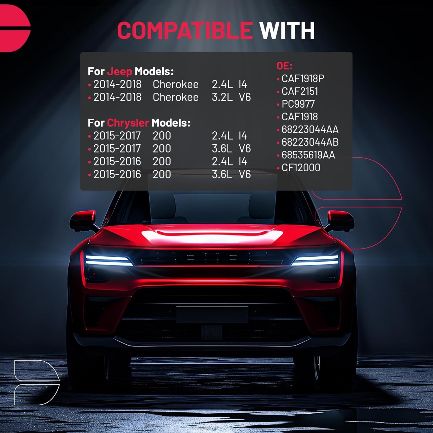 - [Vehicle Fitment] Compatible with Chrysler 200 2015-2017 2.4L l4/ 3.6L V6, Compatible with Jeep Cherokee 2014-2018 2.4L l4/3.2L V6