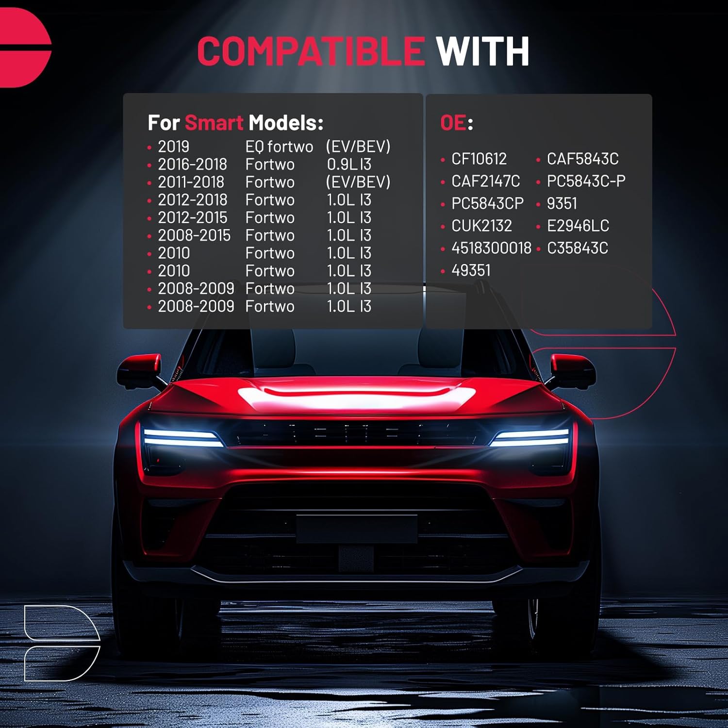 - [Vehicle Fitment] Compatible with Smart Fortwo 2016-2018 0.9L l3, Fortwo 2012-2018 1.0L l3, Fortwo 2008-2015 1.0L l3, EQ fortwo 2019
