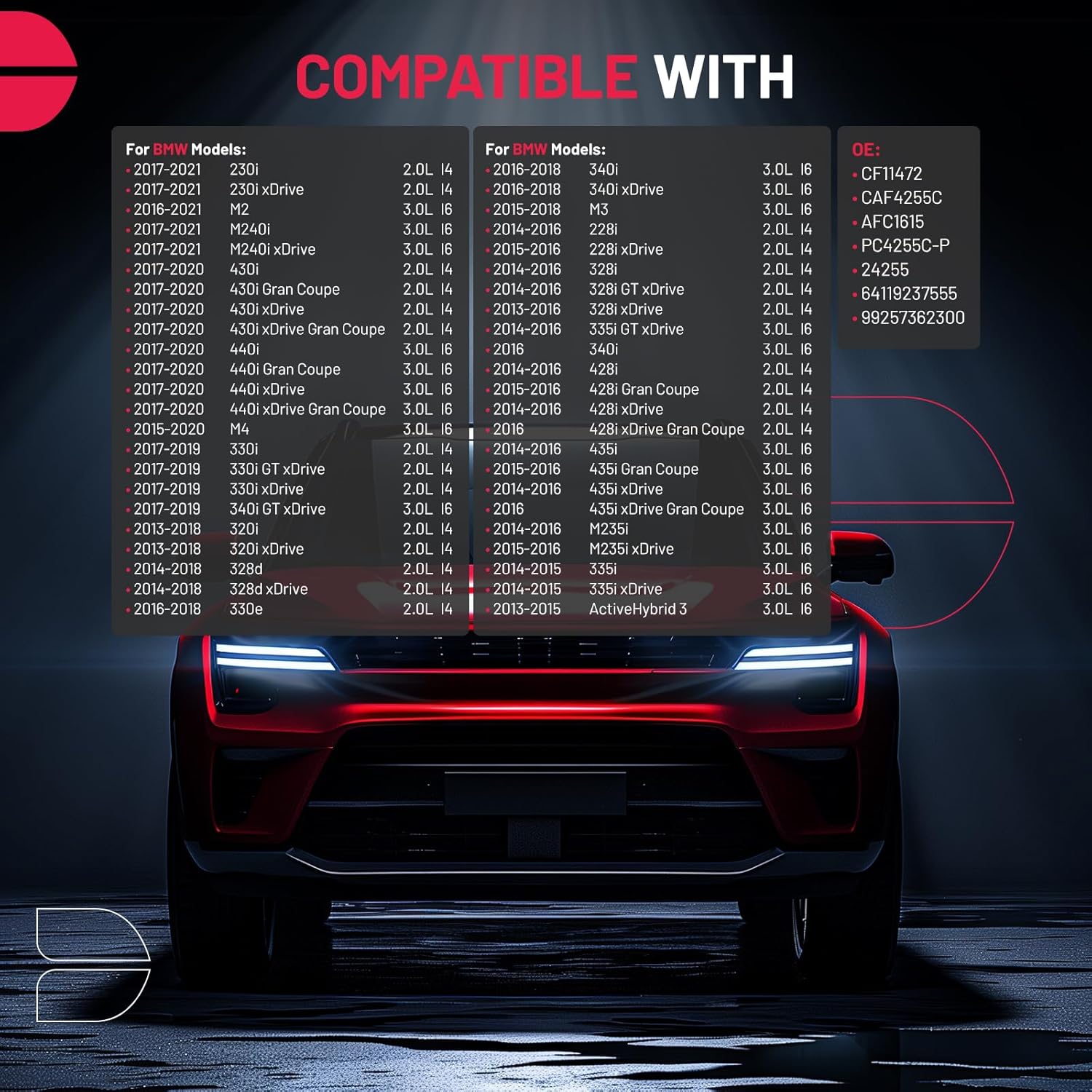 - [Vehicle Fitment] Compatible with BMW 335i GT xDrive/435i/435i xDrive/M235i 2014-2016; 228i xDrive/428i Gran Coup/435i Gran Coupe/M235i xDrive 2015-2016; M3 2015-2018; 330e/340i/340i xDrive 2016-2018; 340i/435i xDrive Gran Coupe/428i xDrive Gran Coupe 2016; 335i/335i xDrive 2014-2015; 328i xDrive 2013-2016; ActiveHybrid 3 2013-2015. Please check the OE No.: CF11472, CAF4255C, AFC1615, PC4255C-P, 24255, 64119237555, 99257362300