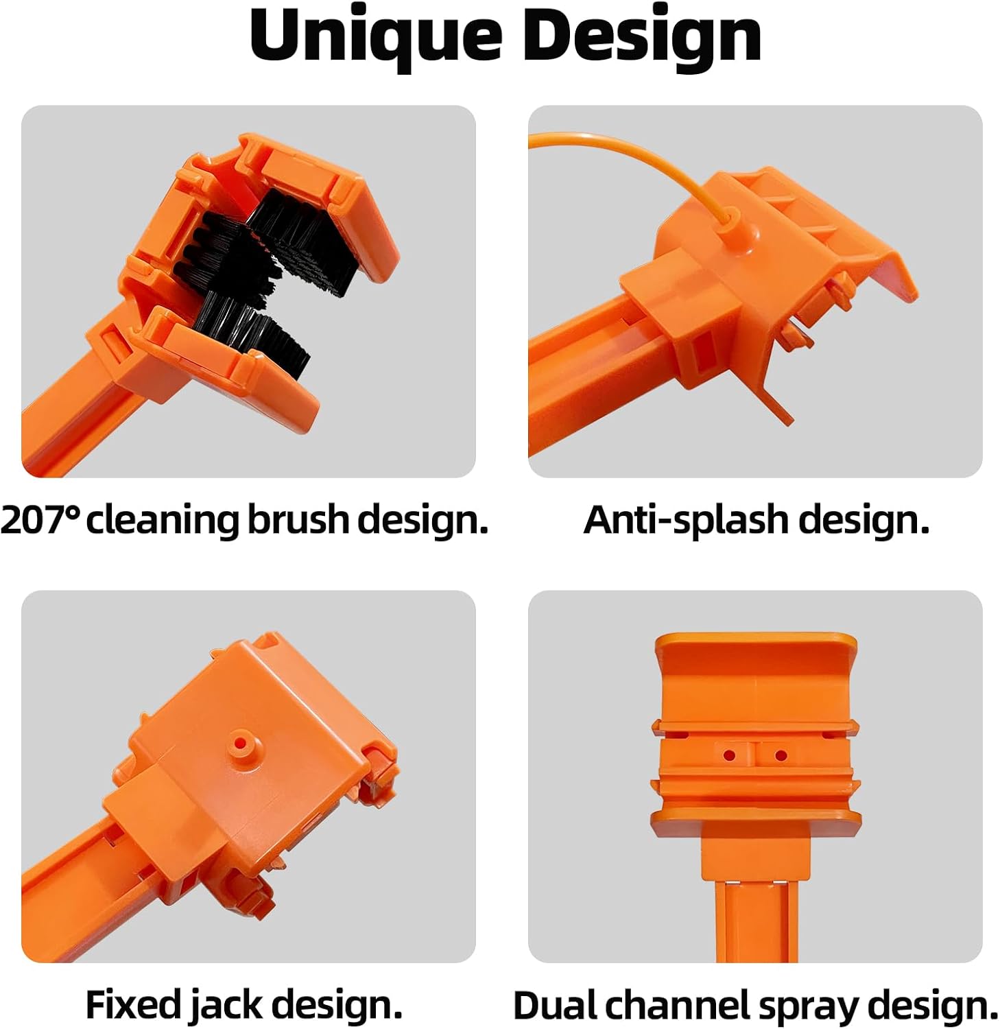 - 【270°BRUSH】: Chain Brush is designed with 270° bristles for cleaning three sides. While cleaning, you can press the nozzle to brush the chain with one hand and turn the chain with the other