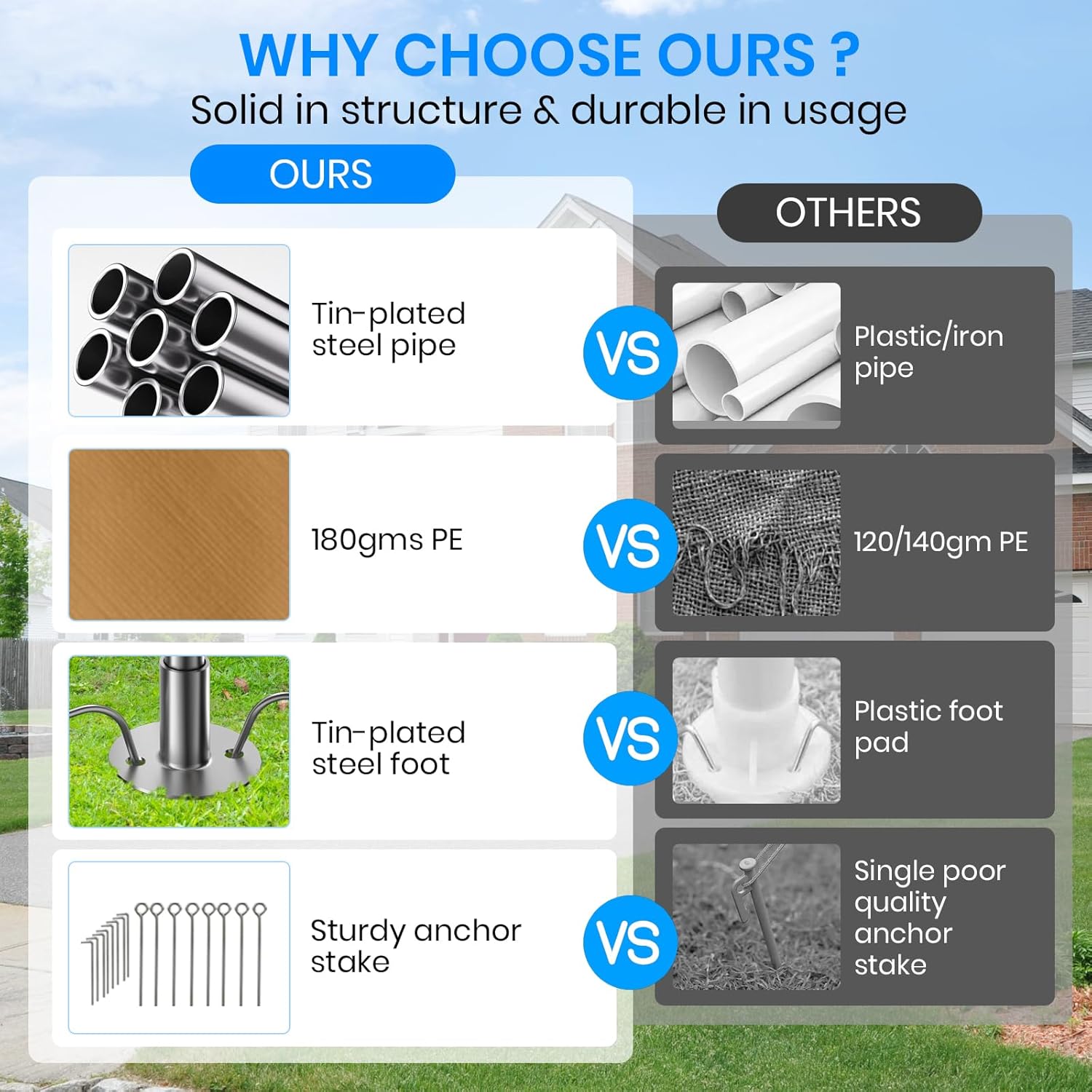 - Multi-Purpose Protection:Not just for vehicles, this 12x20 FT carport is ideal for storing boats, RVs, motorcycles, and even as a shelter for outdoor events like parties, picnics, or gatherings. Its versatile design ensures it can adapt to various needs, providing reliable shelter wherever you need it.