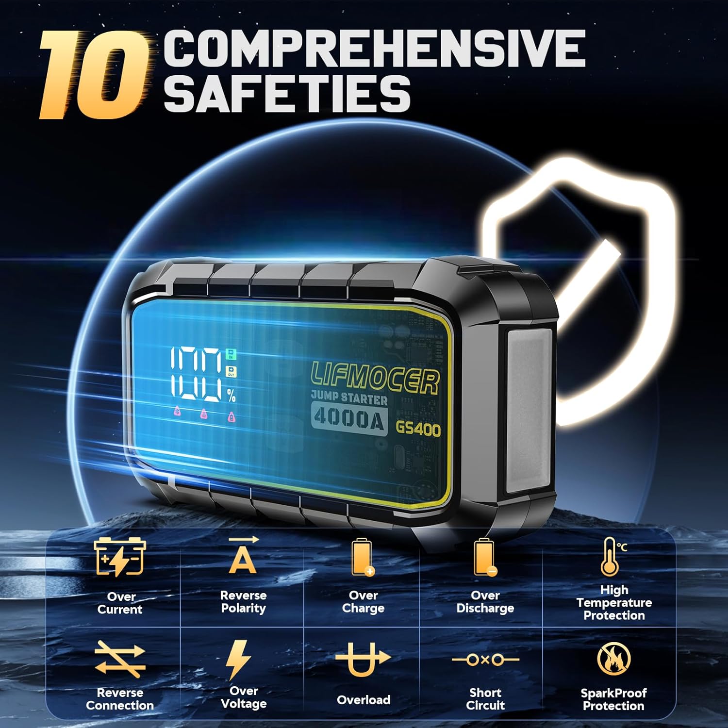 - ăIntelligent Secure Protection DesignăOur battery jump starter built-in 10 types of protection, frees your worries of misuse and sparks. It comes with excellent conductivity and heavy-duty jump cables. We wanted to ensure our users feel 100% safe using our product