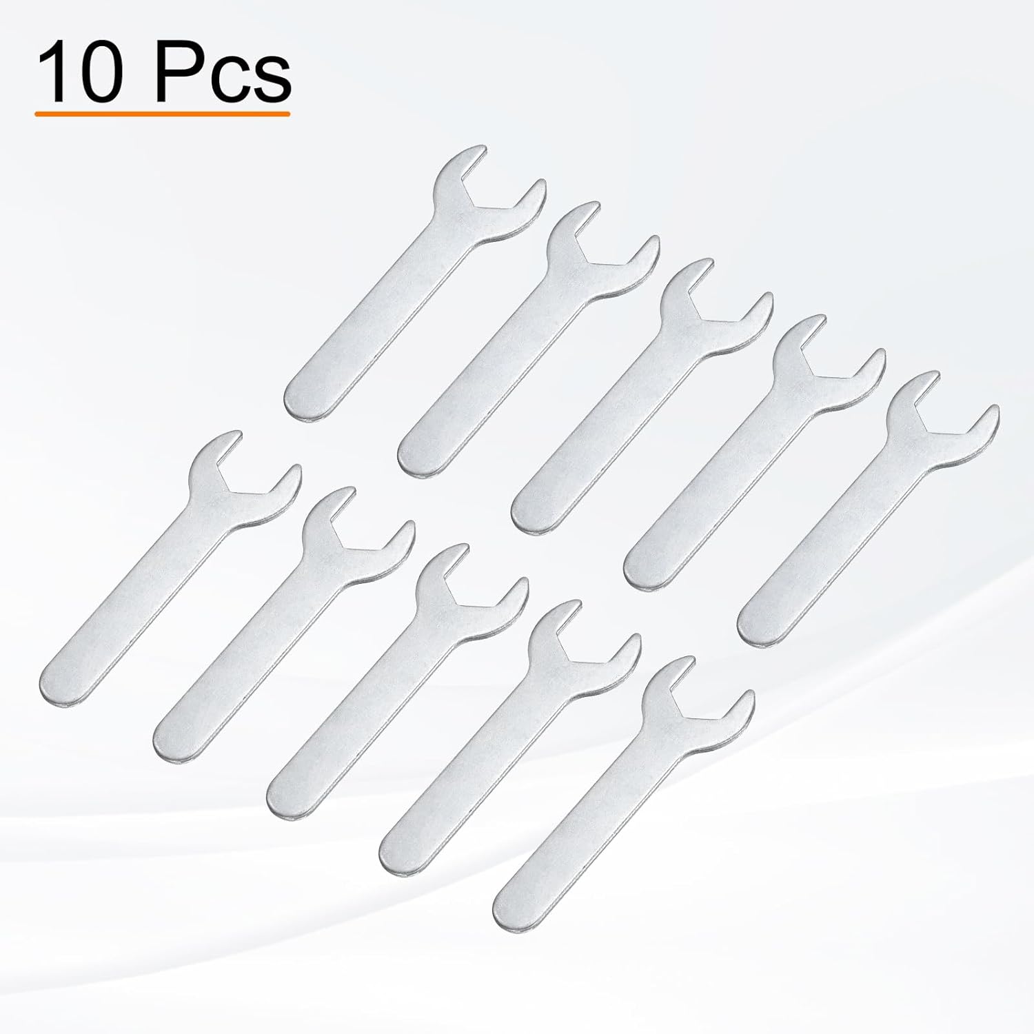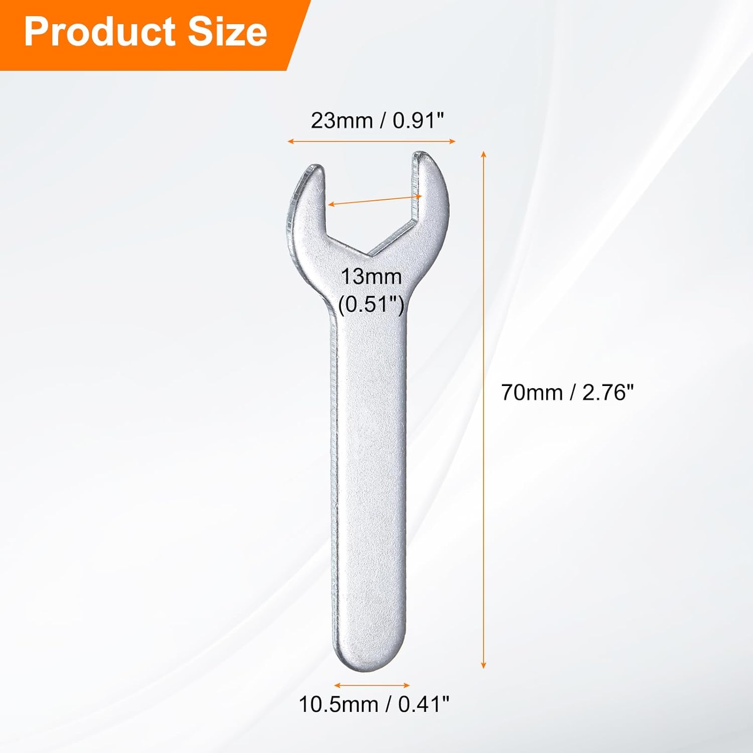 - Size - Open end: 13mm / 0.51"; Open outside width: 23mm / 0.91"; Total length: 70mm / 2.76"; Stem thickness: 2mm / 0.08"; Stem width: 10.5mm / 0.41"; Color: Silver-grey; Package includes: 10 x Single open-end wrenches. The open wrench set is thin enough to work on tight spots.