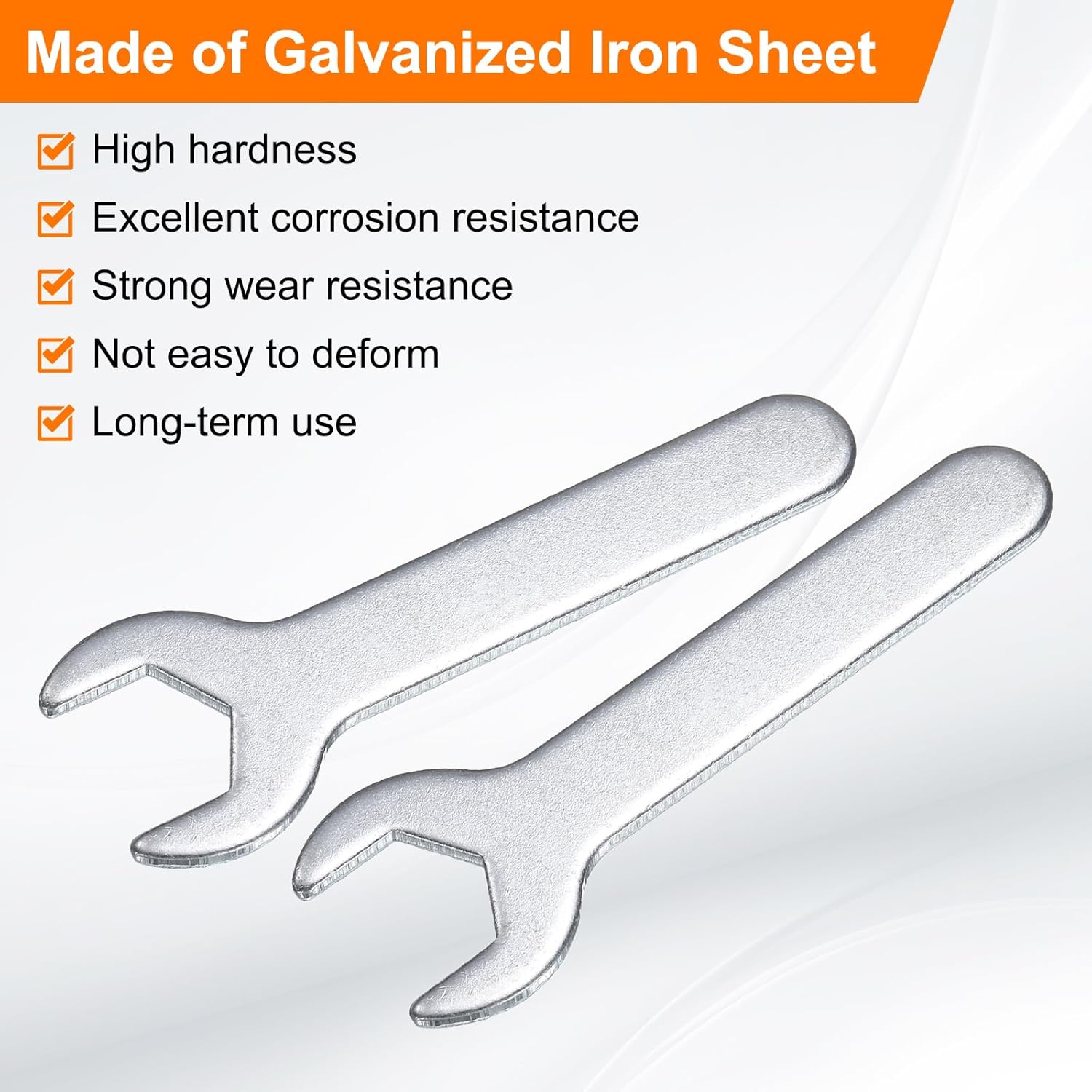 - Long Lasting - Our single open-end wrench is made of an iron plate, which has high hardness and excellent corrosion resistance. The surface galvanizing improves its wear resistance, keeps its surface smooth and reduces wear, is not easy to deform, and can be used for a long time.