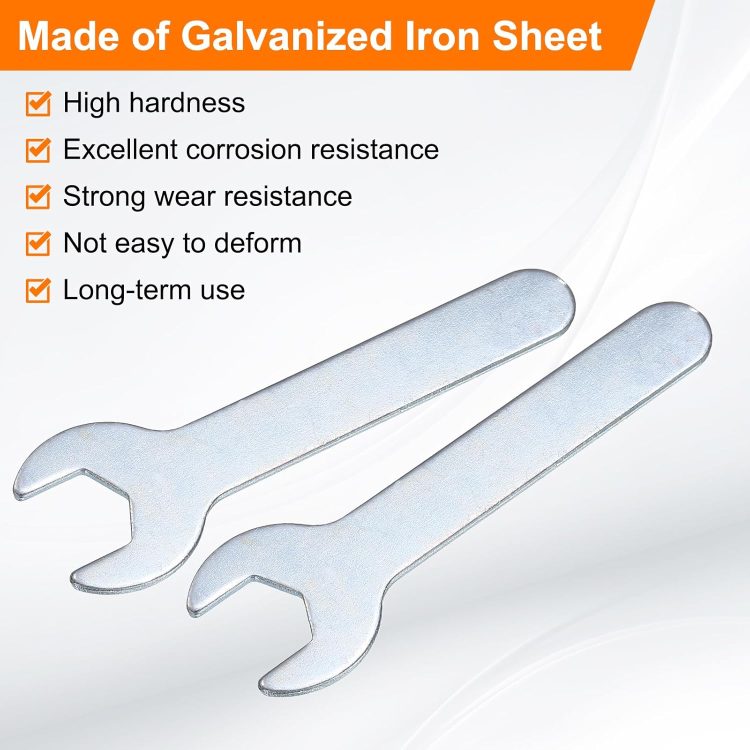 - Long Lasting - Our single open-end wrench is made of an iron plate, which has high hardness and excellent corrosion resistance. The surface galvanizing improves its wear resistance, keeps its surface smooth and reduces wear, is not easy to deform, and can be used for a long time.