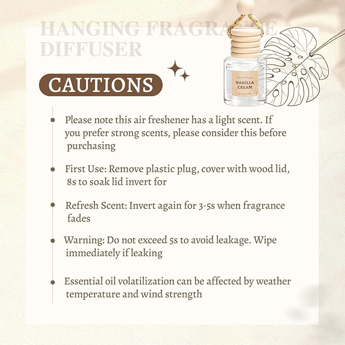 - ใSlight Fragranceใ: Features a light, refreshing fragrance designed to eliminate odors without the strong, pungent smell typical of other car air fresheners(๐๐ญ๐ญ๐๐ง๐ญ๐ข๐จ๐ง: ๐๐ฅ๐๐๐ฌ๐ ๐ง๐จ๐ญ๐ ๐ญ๐ก๐ข๐ฌ ๐๐ข๐ซ ๐๐ซ๐๐ฌ๐ก๐๐ง๐๐ซ ๐ก๐๐ฌ ๐ ๐ฅ๐ข๐ ๐ก๐ญ ๐ฌ๐๐๐ง๐ญ. ๐๐ ๐ฒ๐จ๐ฎ ๐ฉ๐ซ๐๐๐๐ซ ๐ฌ๐ญ๐ซ๐จ๐ง๐ ๐ฌ๐๐๐ง๐ญ๐ฌ, ๐ฉ๐ฅ๐๐๐ฌ๐ ๐๐จ๐ง๐ฌ๐ข๐๐๐ซ ๐ญ๐ก๐ข๐ฌ ๐๐๐๐จ๐ซ๐ ๐ฉ๐ฎ๐ซ๐๐ก๐๐ฌ๐ข๐ง๐ )