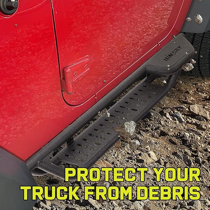 - 3-Tube Triangular Structure - The truck side steps are made of three sturdy carbon steel tubes in a triangular structure to provide good support. The special structural design not only allows the bars to fit more closely to the truck, but also better protects the Wrangler rocker panel from potential damage, no matter in the case of city driving or off-road adventures.
