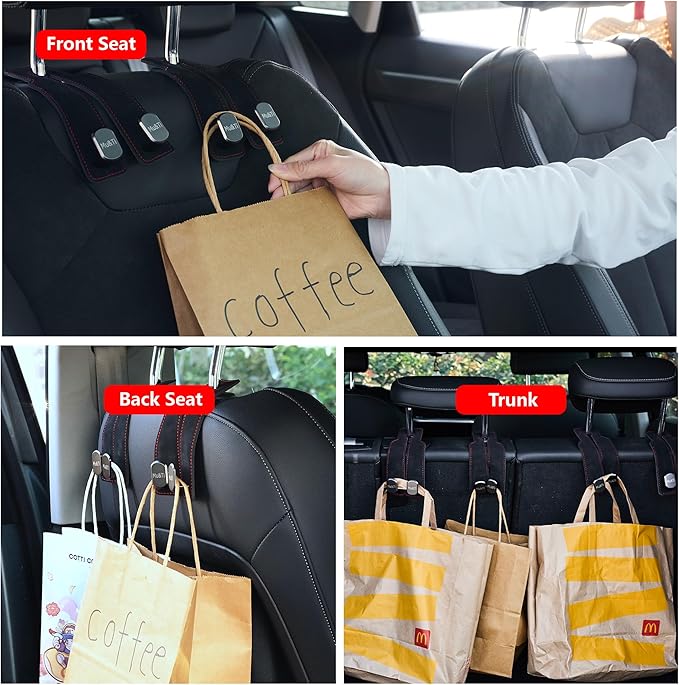 - Thoughtful Design: The Car Seat Headrest Hook is designed to help organize your cluttered car seats and maximize your vehicle's storage space. It allows you to easily access your items while driving, adding extra space for hanging bags, clothes, and more. This ensures that your car remains tidy, elegant, and free from the mess of loose items.