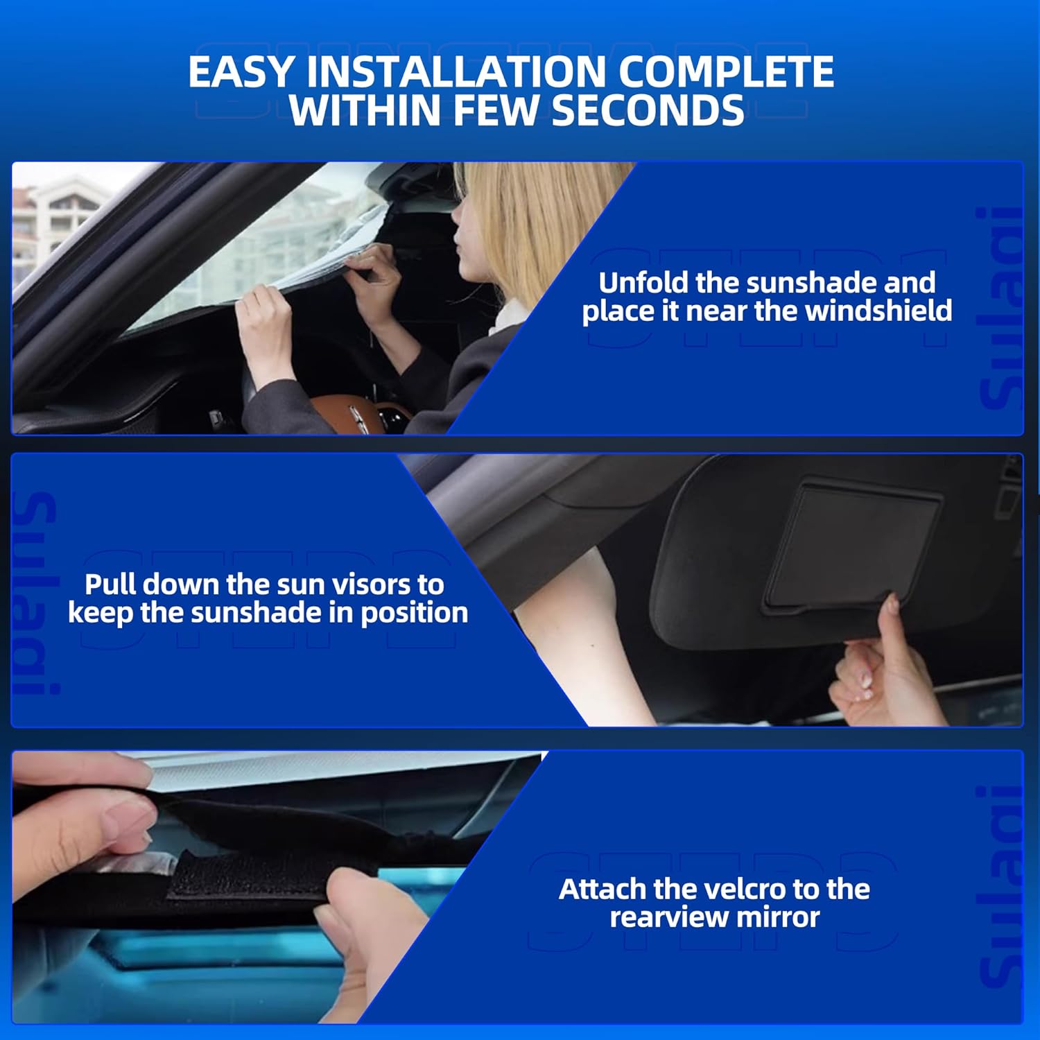 - ๐๐ซ๐๐ฆ๐ข๐ฎ๐ฆ ๐๐๐๐ ๐๐๐๐ฅ๐๐๐ญ๐ข๐ฏ๐ ๐ ๐๐๐ซ๐ข๐: Sulagi car front windshield sun shade is made of high quality 243T polyester fabric materials, durable and eco-friendly, tear-resistant and wear-resistant. Providing long-term use and is less prone to damage for your windshield