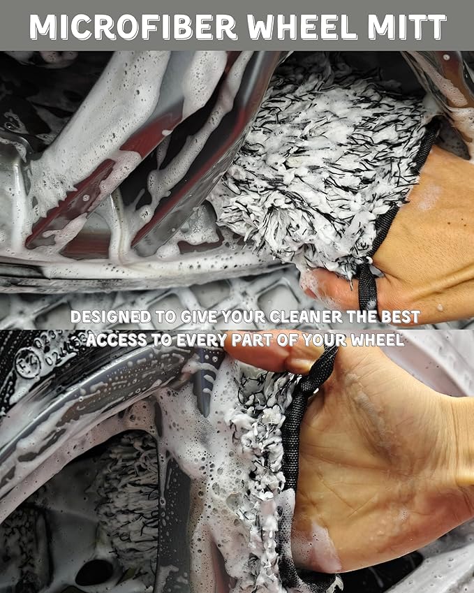 - ERGONOMIC & VERSATILE: Slim brush fits tight spaces (e.g., behind spokes), plush mitt cleans intricate rims, and microfiber towel dries wheels streak-free. Perfect for alloy, chrome, or matte finishes