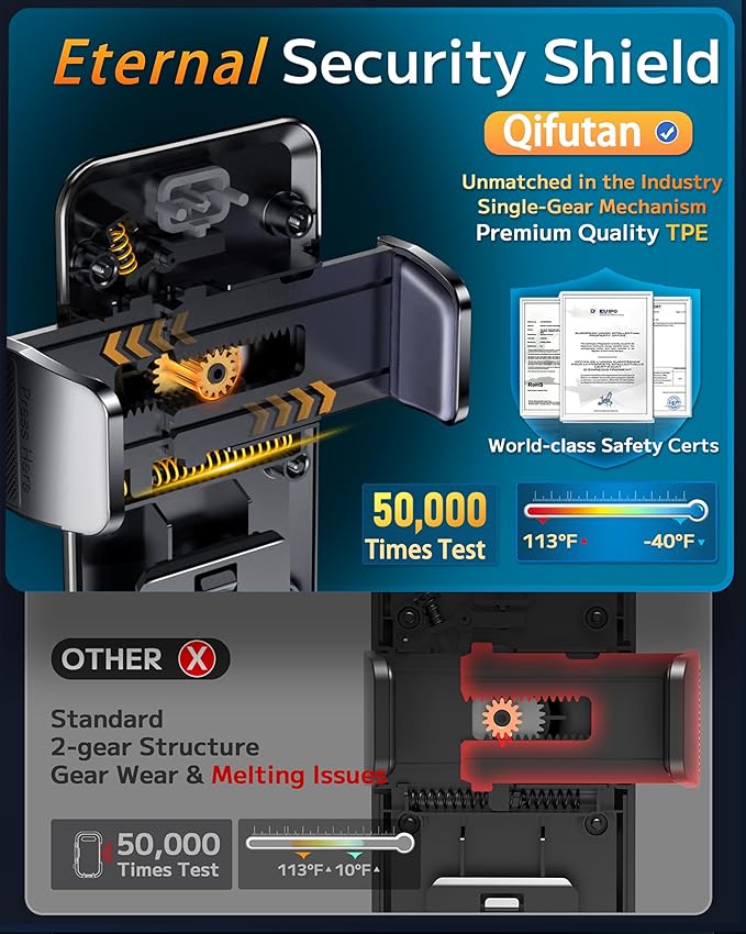 - Strong Suction Performance: Car phone holder comes with a double-locked suction cup made of heat-resistant TPU material, guaranteeing it stays firmly attached to your dashboard even in extreme heat. Reactivate its sticky power by washing with water and air-drying.