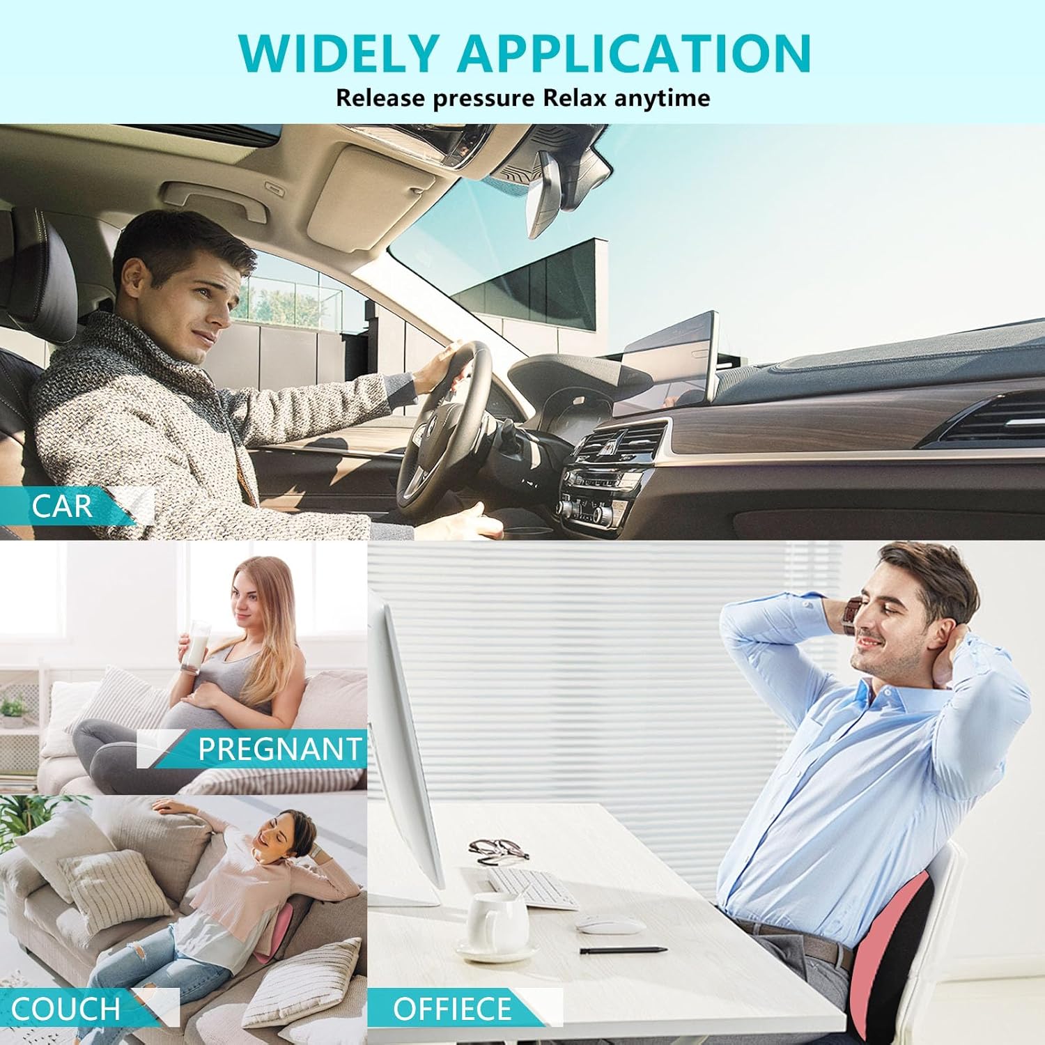 - Versatile Use for All Settings: This back pillow is designed for universal compatibility, effortlessly fitting on any chairs. Whether you’re working from home, commuting, or traveling long distances, it’s the perfect solution for alleviating back pain and discomfort, promoting a pain-free sitting experience for office workers, students, drivers, pregnant women, and elderly alike