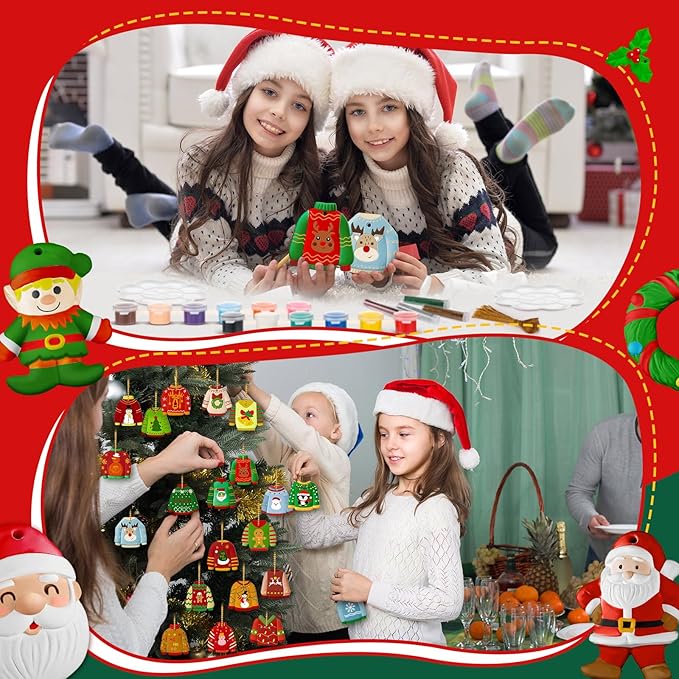 TecUnite 28 Pcs Ceramic to Paint Christmas Ornament Crafts Adults Unpainted DIY Ceramic Figurines Decorate and Paint Your Own Ornaments Kits DIY Craft Xmas Holiday Activities(Ugly Sweater)