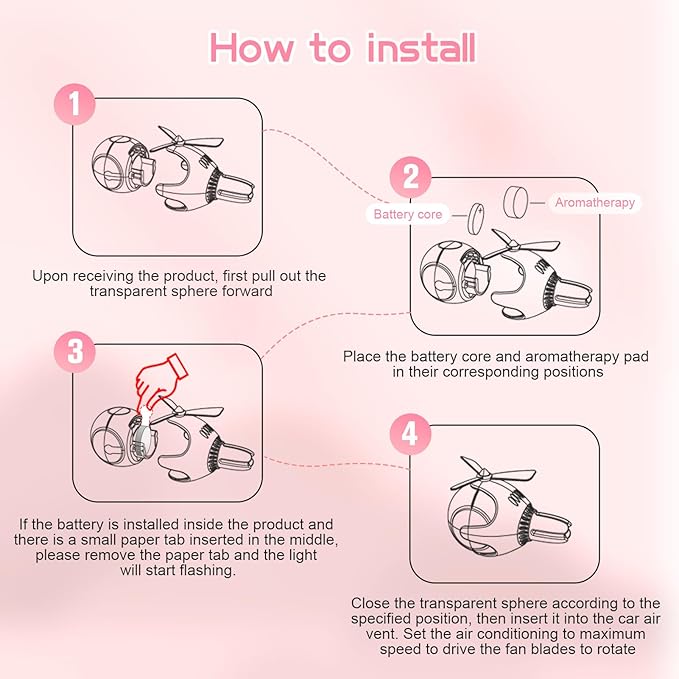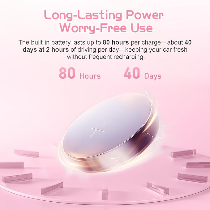 - [Kawaii Bunny Design · Dual Air Purification & Decoration] -- Adorable 3D pink bunny shape with matte-finish texture and smooth curves adds a dreamy touch to your car interior. Hidden vents integrated into the bunny ears work with 4 replaceable scent pads to release subtle fragrance, serving as both a cute decorative companion and an effective air freshener.