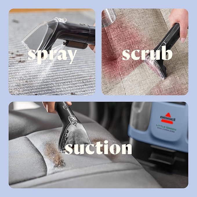 - STRONG SUCTION: Tackle tough pet stains, embedded dirt, and everyday spills from upholstery, car interiors, carpet, and more.