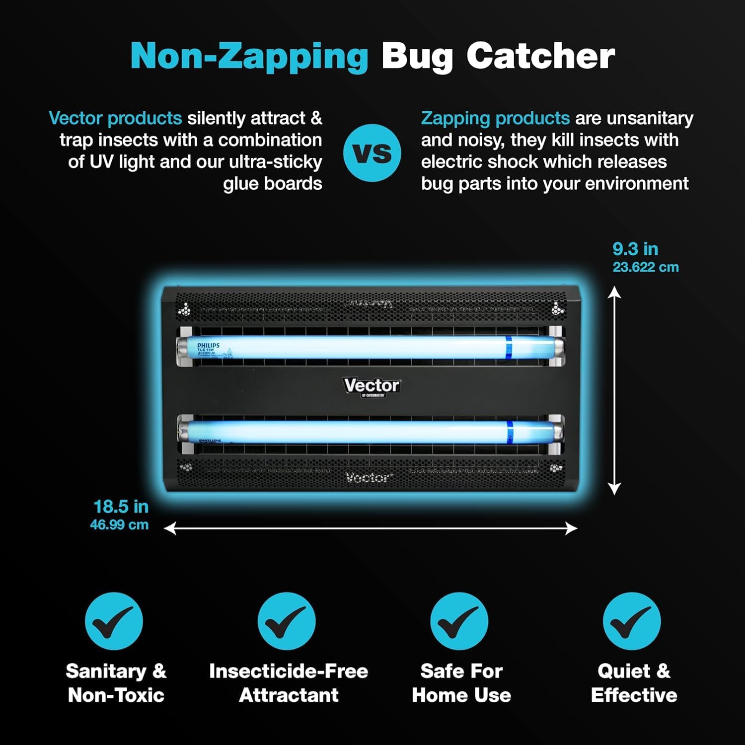 - INDUSTRIAL STRENGTH UV TRAP: Catchmaster's Insect Vector 30 Light Trap is remarkably discreet and undemanding to maintain. It's made with airplane-grade aluminum casing and an industrial-strength design for increased durability. This ultra-sturdy indoor fly trap for home comes with a replaceable glue board and 2 shatterproof 30-Watt bulbs (Philips TL-D 15W Actinic BL)