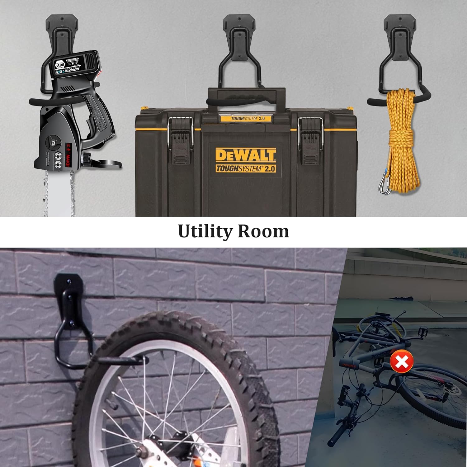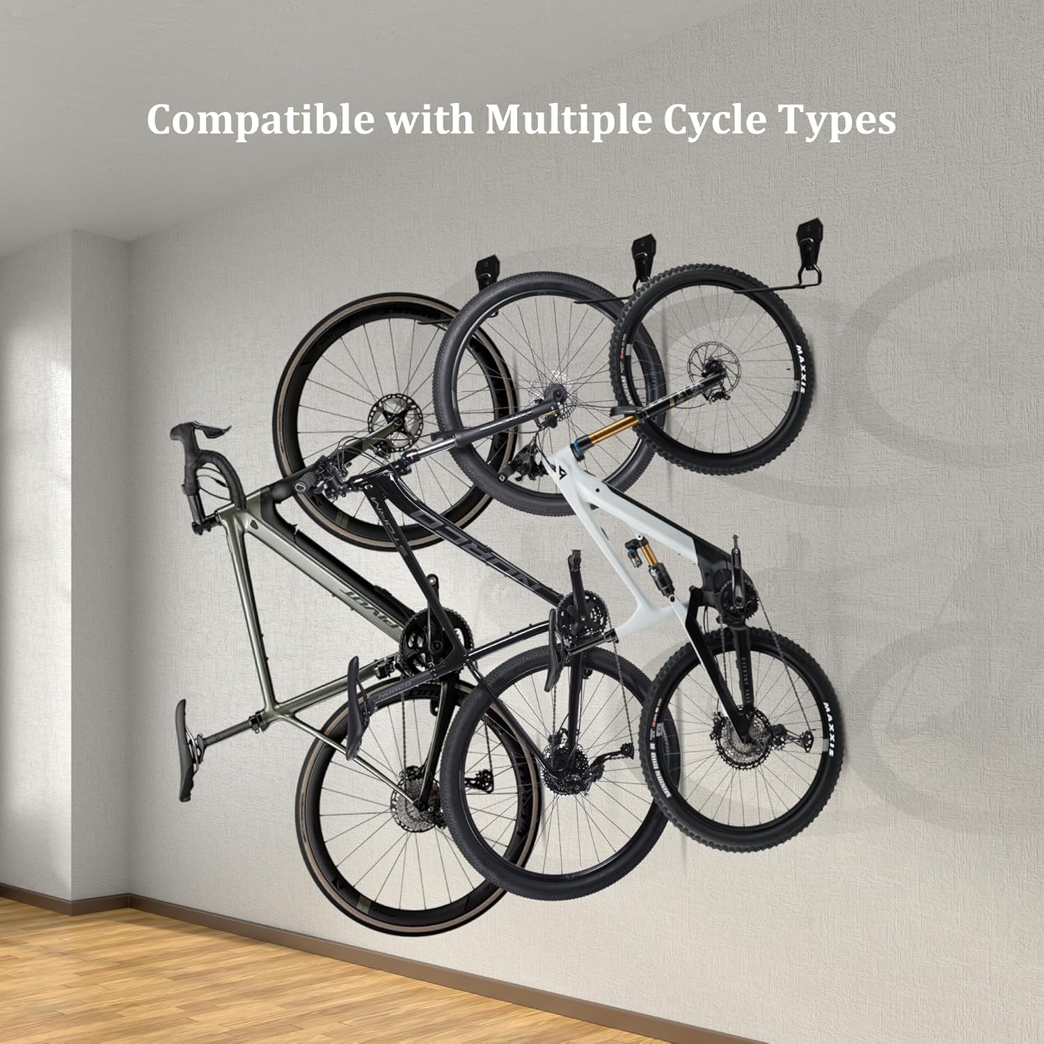 - Space-saving: With a vertical wall-mounted design, it allows bicycles to be hung vertically on the wall, effectively saving garage space and keeping the garage tidy. It can also be used to store other items.