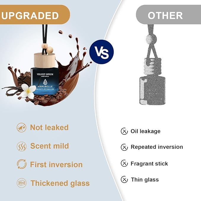- 【Aromatic Variety】The scents of our car air fresheners are Citrus Musk, Spicy Sandalwood, Saffron Amber, Amber Vanilla and Woody Citrus, from sweet fruit aroma to intense woody aromas, They are all the most popular perfumes on the market, from fashionable urban women to successful mature men, AirPurelle car air freshener there is always a fragrance that belongs to you