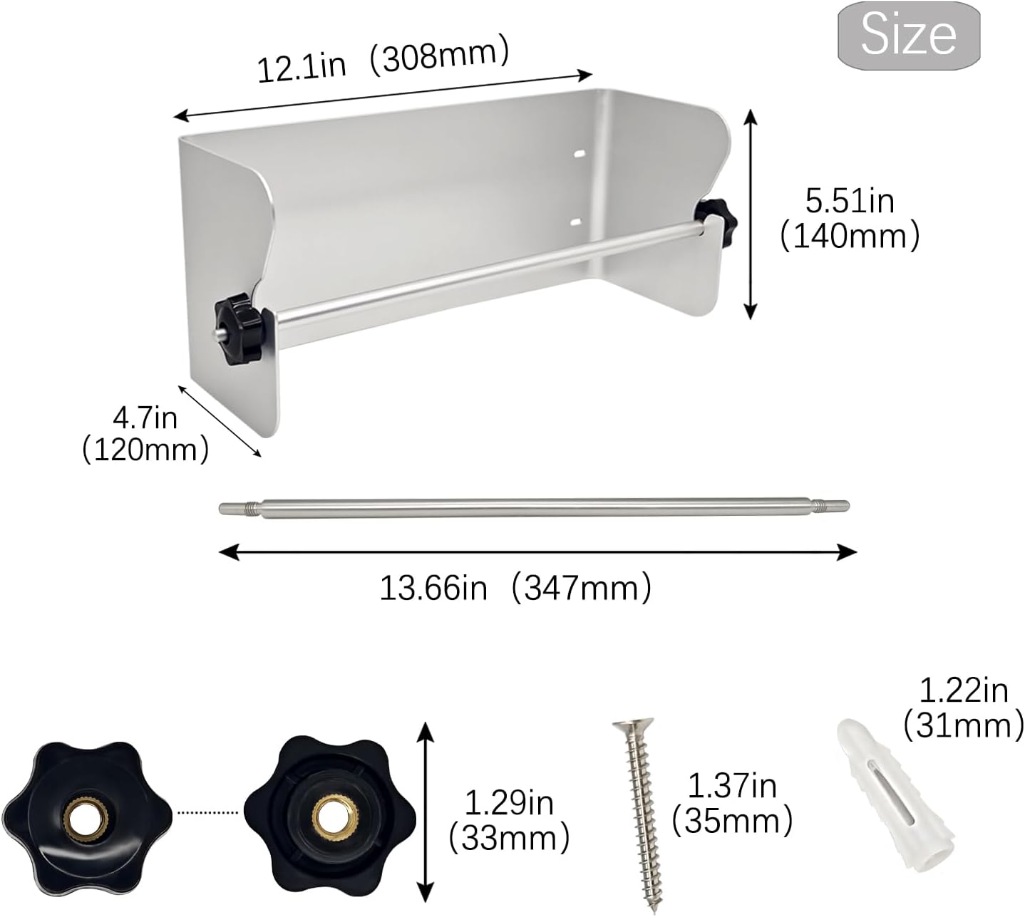 - 【Large Size】The usable length of the paper towel holder is 12 inches, which can accommodate large and small paper towels, providing enough space for paper rolls to roll smoothly
