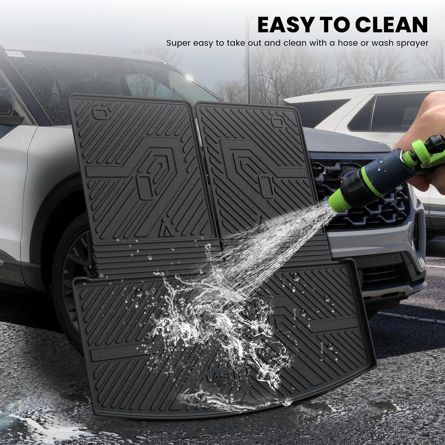 - ăEasy to Install & CleanăIntegrated design eliminates the hassle of separate installation and repeated disassembly, simplifies operation, and allows for cleaning the entire mats in one go. The trunk and backrest mats effortlessly organize various in-car debris (liquids/crumbs/hair/sand) and support cleaning with cloths, vacuums, or hose, offering instant clean and immediate reuse