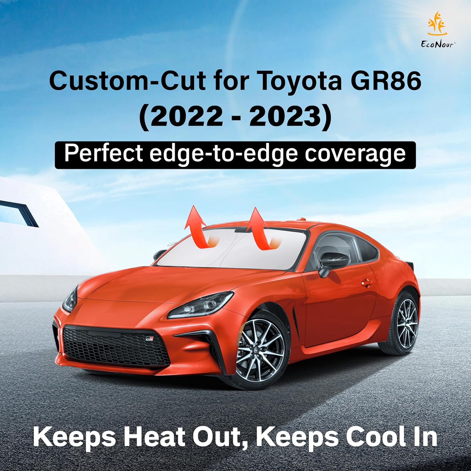 for Toyota GR86 2022 2023 Windshield Sunshade- EcoNour 240T Polyester Material Cars Sun Visor Reflector Blocks UV Rays - Foldable Sunshade Interior Protection - Toyota GR86 Accessories