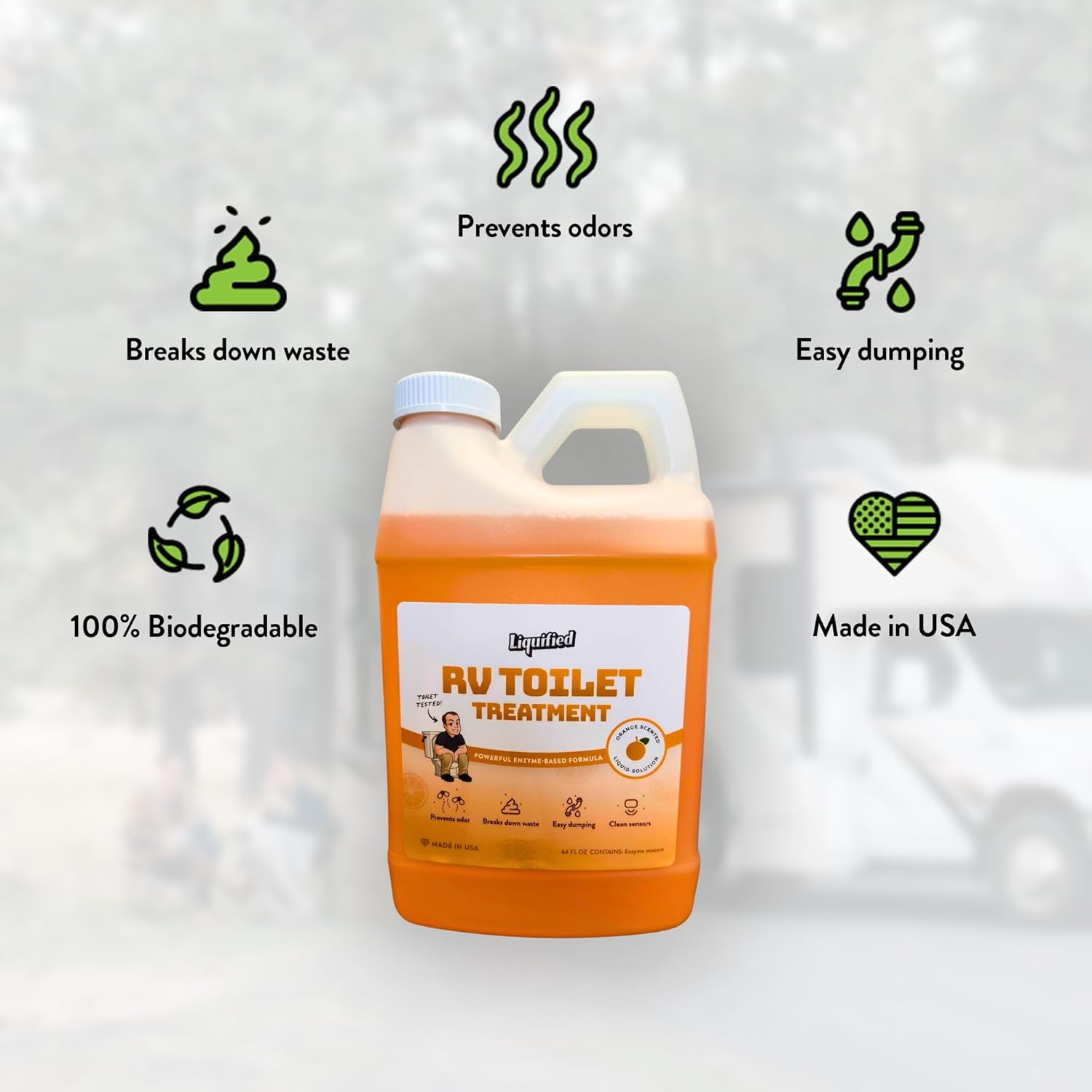 Liquified RV Toilet Treatment - Black Holding Tank Digester - Odor Eliminator - Orange Scent - Matts RV Reviews (Orange, 64oz)