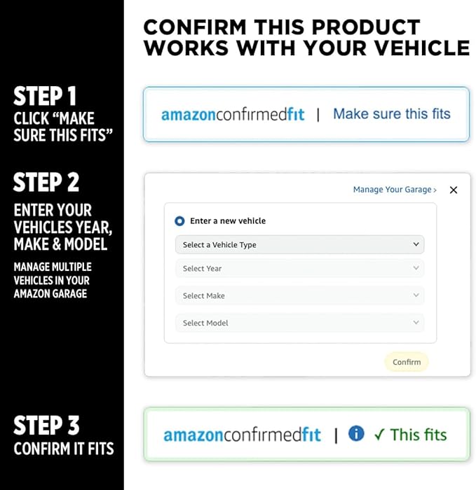 - VEHICLE FITMENT: Before purchase, make sure the part fits your vehicle by using the "Amazon Confirmed Fit" feature at the top of the page for accurate compatibility.
