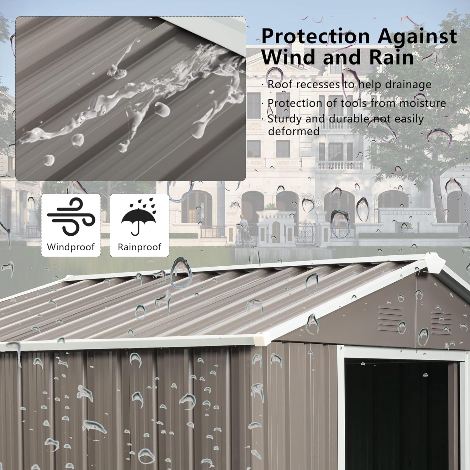- š”ššš¢š§ššØš«ššš ššš«š®ššš®š«š: There's nothing more frustrating for gardeners than a collapsed garden tool shed. Luckily, this sheds & outdoor storage 5x6 features an upgraded reinforced frame floor, windproof ground stakes and galvanized iron frame for enhanced stability. The thick galvanized steel panels are coated with high-quality paint, making them rust, UV, and moisture-resistant, ensuring durability and the ability to withstand harsh weather for at least 10 years.