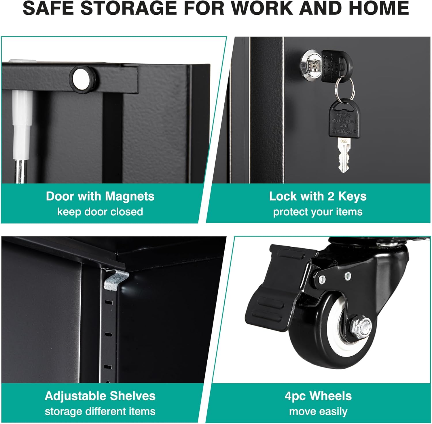 - DURABLE CONSTRUCTION: This metal storage cabinet on wheels features a sturdy cold-rolled steel frame and powder-coated finish, designed for long-lasting use and easy maintenance.;
