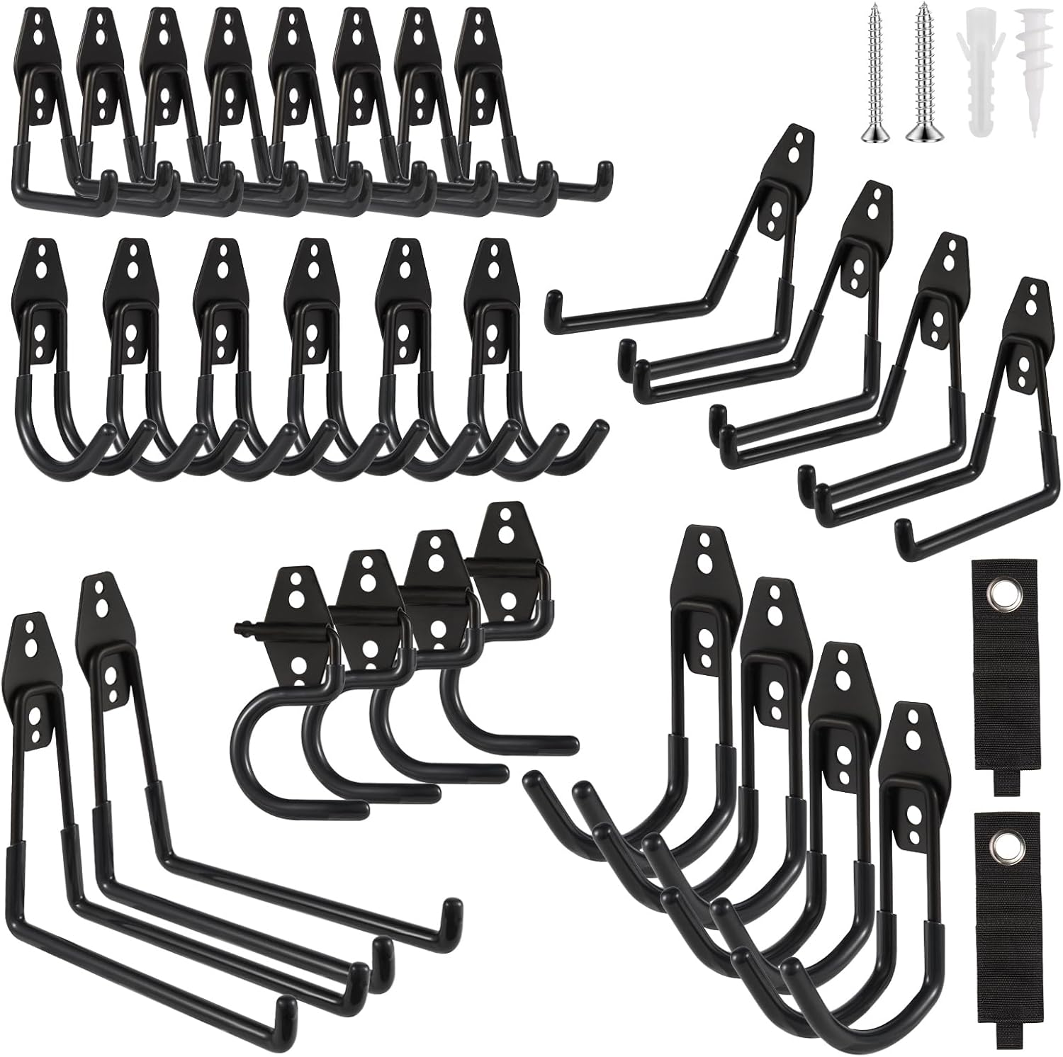 Garage Hook Heavy Duty Wall Storage Hangers, 30 Pack Garage Storage Hooks Steel Tool Black for Ladders, Ropes, Garden Tools