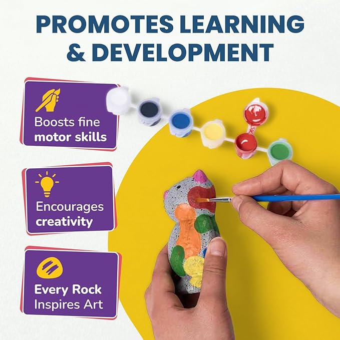 Rock Buddies - DIY Resin Shaped Stone Like Material Animal Figures - Ideal Arts and Crafts for Kids 3-12 Yrs old - Complete Kids Painting Crafts with 6 Projects, Paint, & Brush - Children's Activities