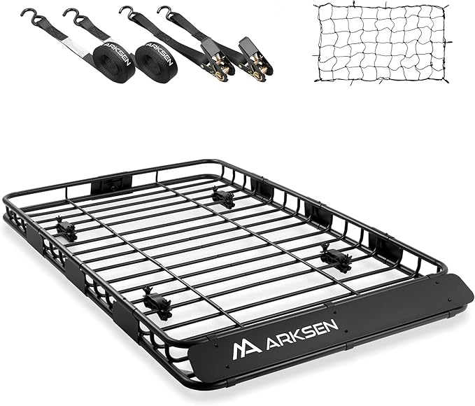 ARKSEN 64 x 39 x 4 Inch Upgrade Universal Roof Rack with Cargo Net, 2 Ratchet Straps - 150Lbs Capacity Heavy Duty Rooftop Cargo Carrier with Extension for Car, SUV & Pickup