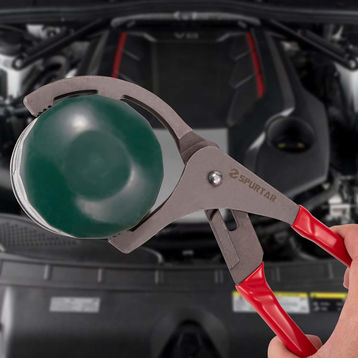 - Swivel Handle for Tight Spaces: Ergonomically designed swivel handles allow 180-degree rotation, making the oil filter wrench easy to remove or install oil filters in hard-to-reach areas, ideal for confined engine bays and complex vehicle designs. Spurtar 9" & 12" oil filter pliers have a serrated design that provides a strong grip to remove the stuck oil filter easily