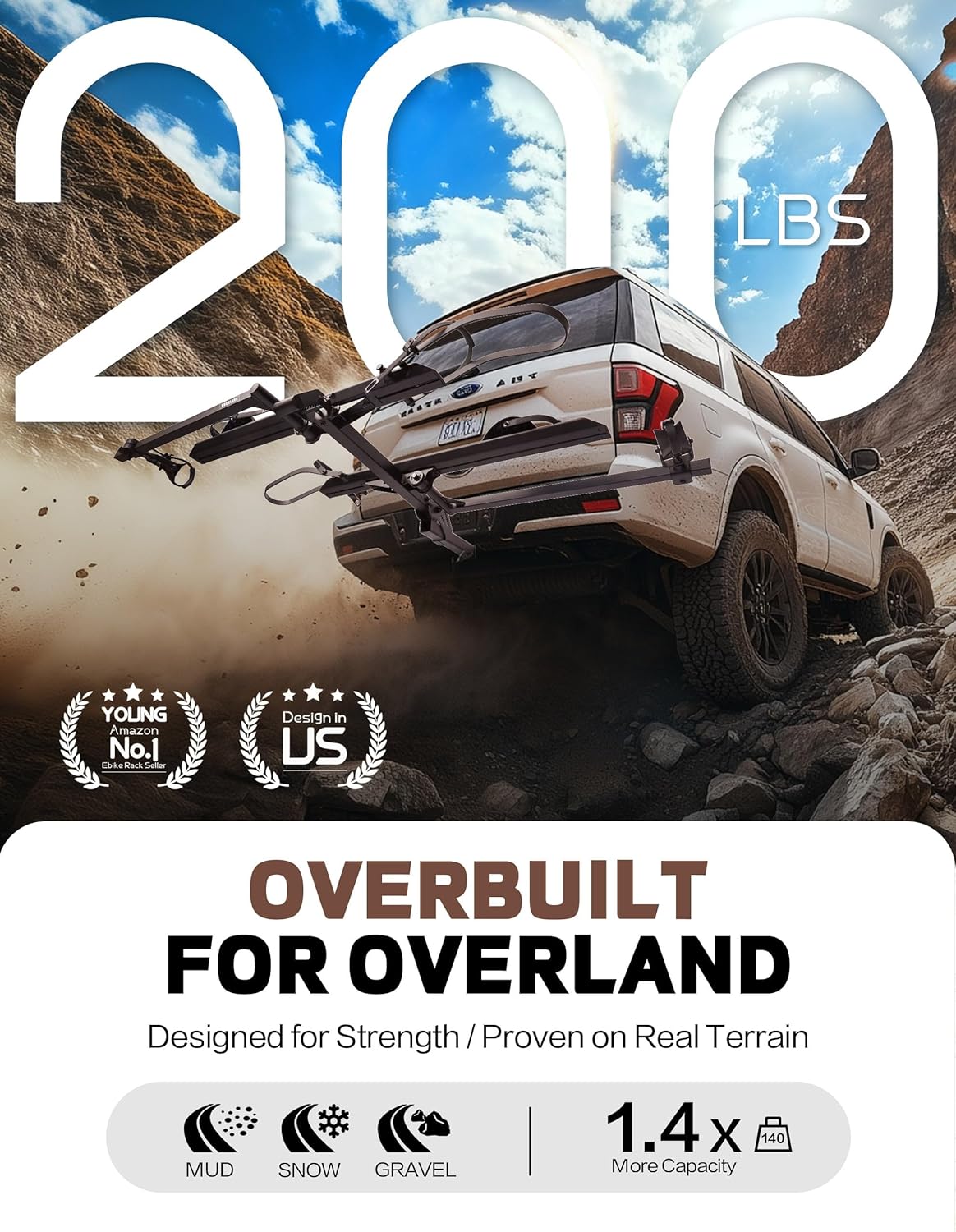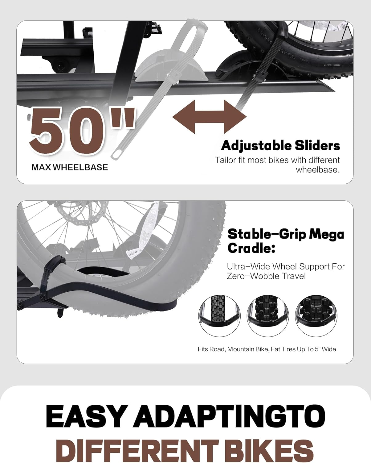 - HIGH CAPACITY FOR EASY LOADING: Made from high-strength alloy steel and aluminum, this Rockland ebike rack is durable and powerful enough to carry 2 ebikes / fat tires / mountain bikes / ordinary bikes weighing up to 200 LBS (100 LBS per tray). It fits any vehicle equipped with a 2-inch receiver and supports ebikes up to 5" wide and with a wheelbase up to 50", accommodating nearly all kinds of the ebike models on the market.