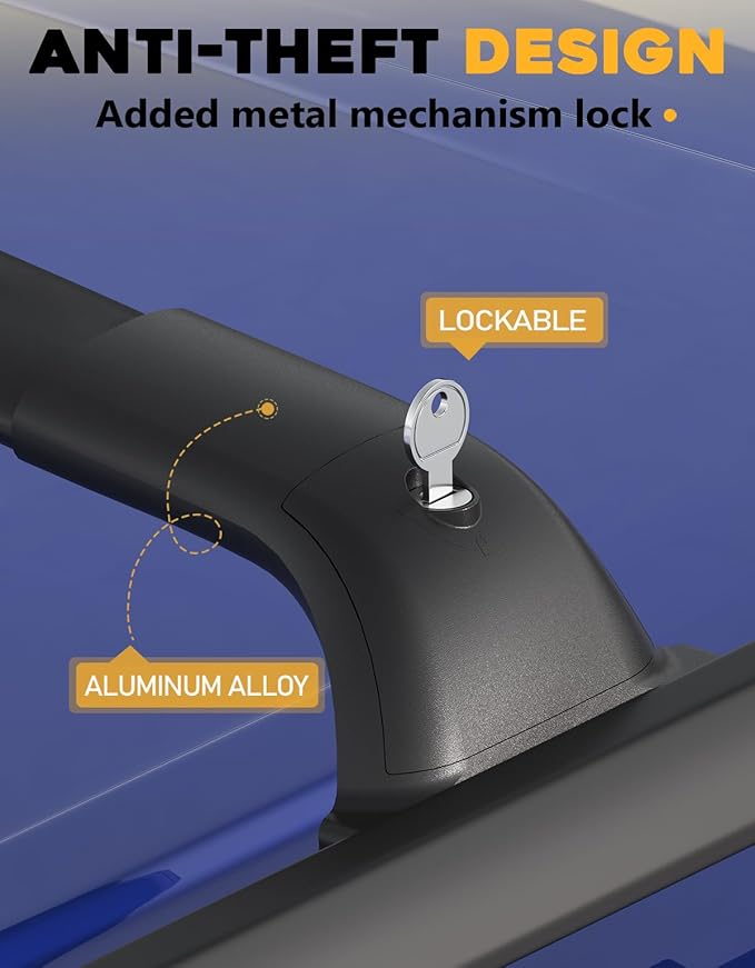 - 【Beats Original OEM】We added a metal lock to the original crossbar for safety and anti-theft.High-grade aluminum alloy crossbars can support luggage, ladder or cargo,roof rails can support a weight of 260 lbs (118kg).
