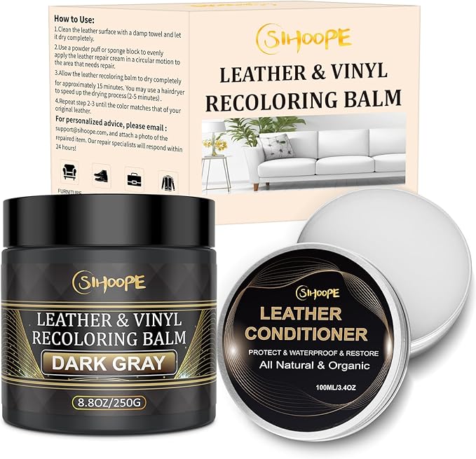 - 【Satisfaction with Leather Repair Kit】 SIHOOPE leather repair kit for furniture includes, 1 Leather Balm +leather conditioner+ 1 Sponge + 2 Gloves + 2 Powder Puff + 1 Brush + 1 Putty Knife + User's Manual,offers a convenient and cost-effective solution for your leather repair needs.If unsatisfied with results, please contact us. We look forward to providing you with an excellent shopping experience