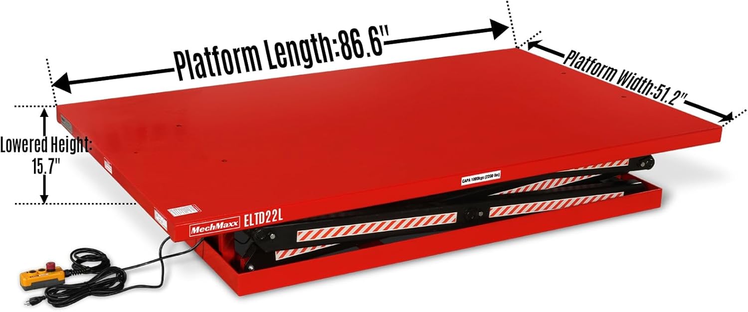 - Weight Capacity: 2200LBS,Raised Height 94.5",Platform Size:86.6" x 51.2"